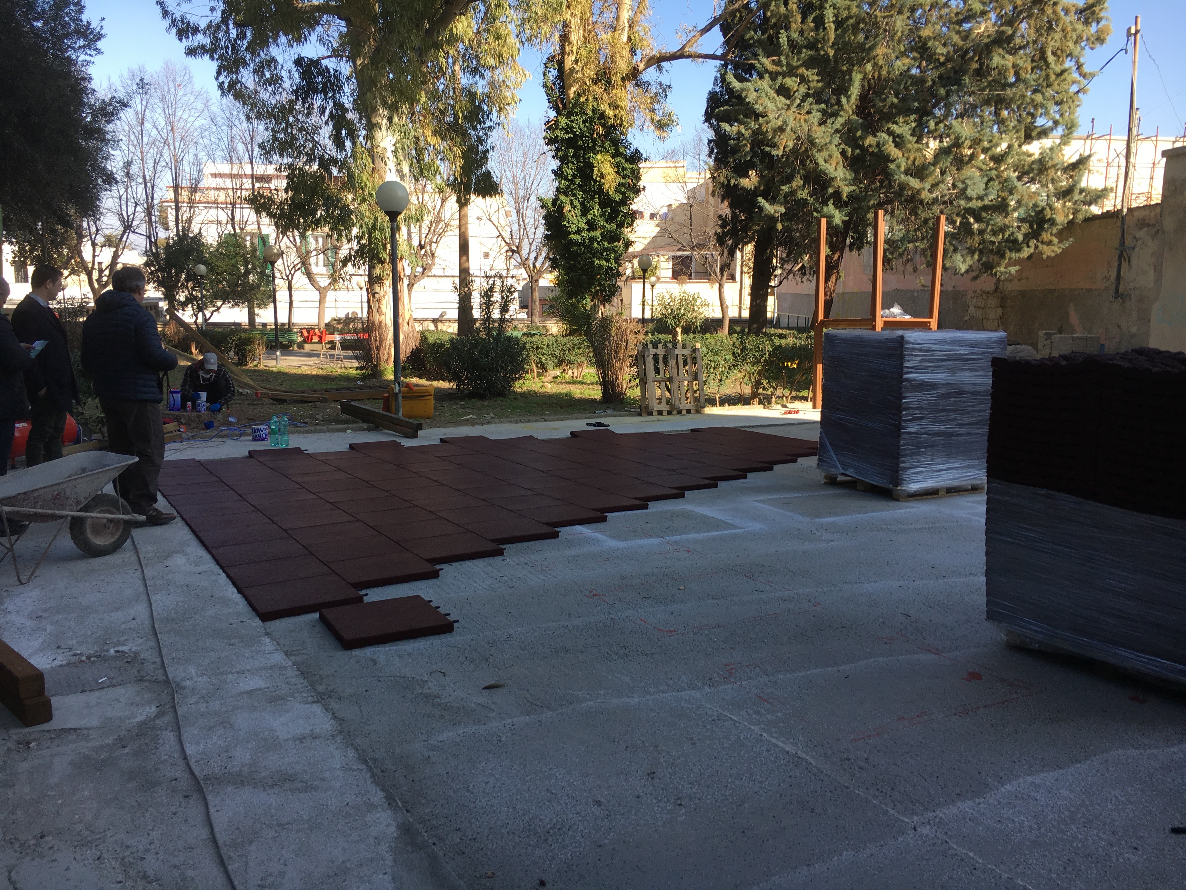 Sempre nella Villa Comunale continuano anche i lavori inerenti la creazione dell'area ludica attrezzata. Questa mattina è iniziata la posa in opera del pavimento gommato propedeutico al montaggio dei giochi per i più piccini. Come noto a seguito della colmatura dello scavo presente da diversi anni a causa della perdita del relativo finanziamento per la costruzione del c.d. centro anziani, si è individuato quello spazio per attrezzarlo ad area ludica. Nei prossimi giorni verranno installati i giochi e la telecamera necessaria a mantenere in sicurezza l'area ed evitare atti vandalici.