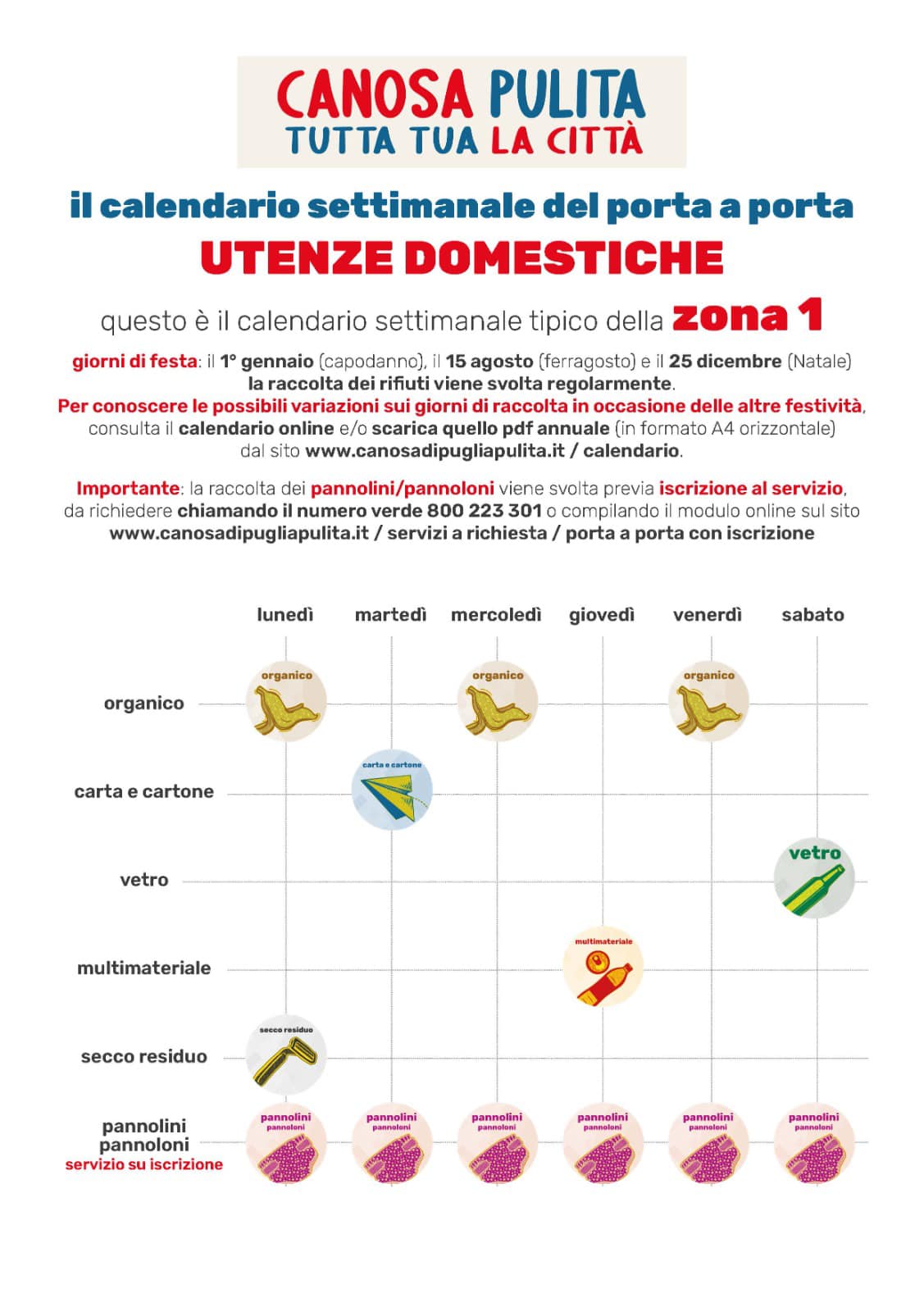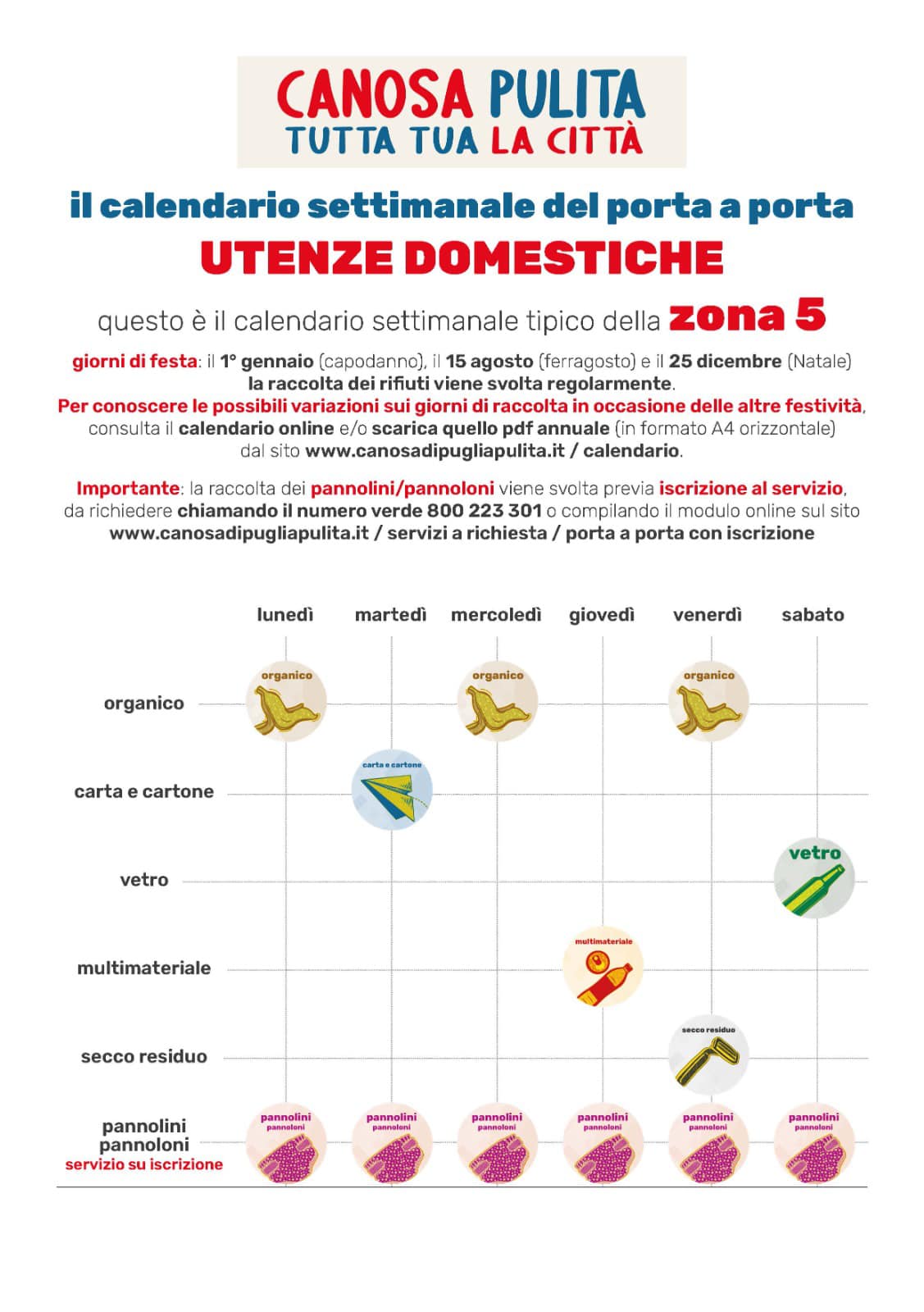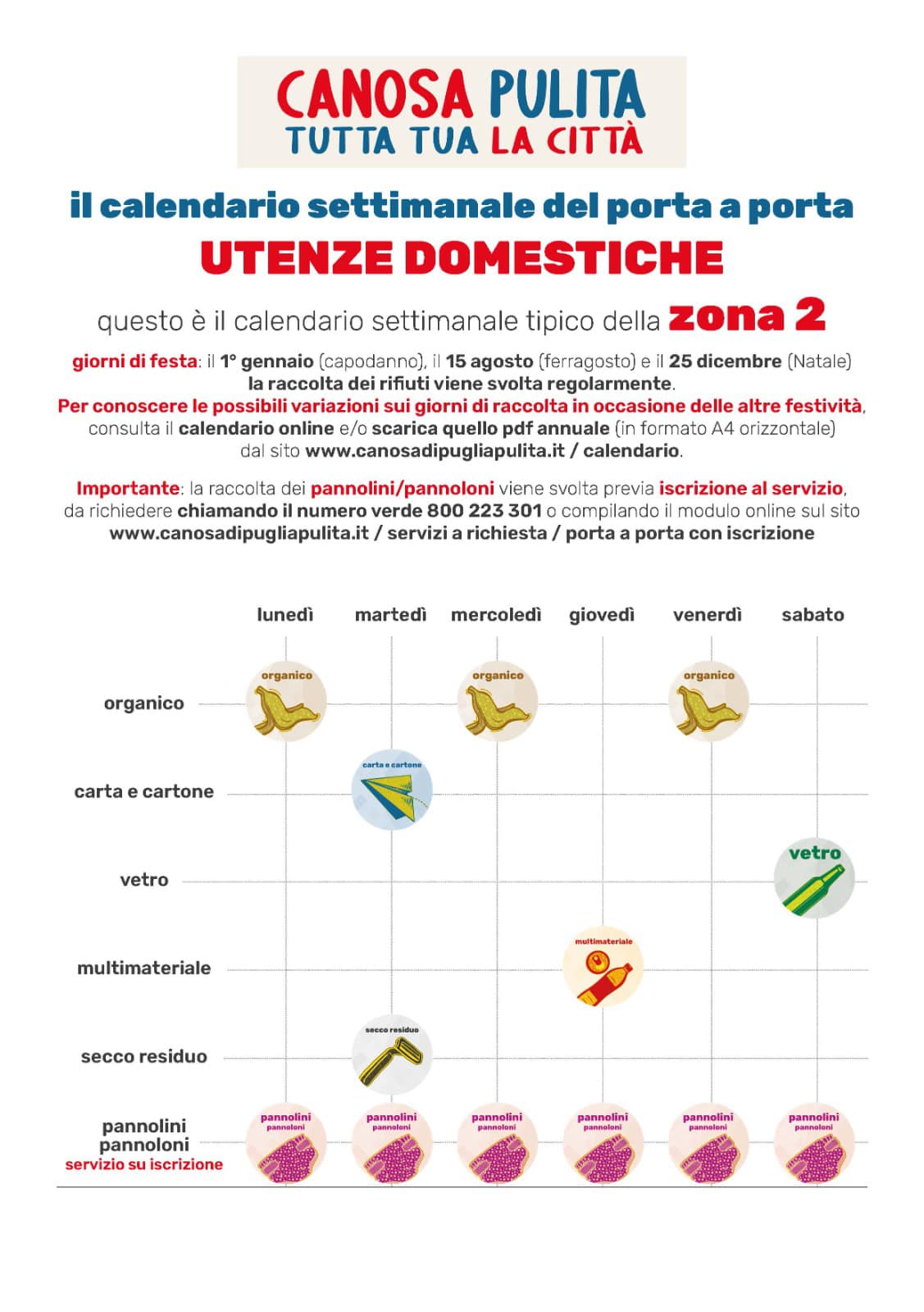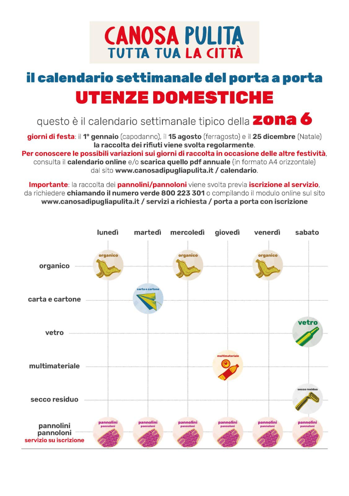 Qui di seguito i calendari settimanali di raccolta e lo stradario di riferimento.