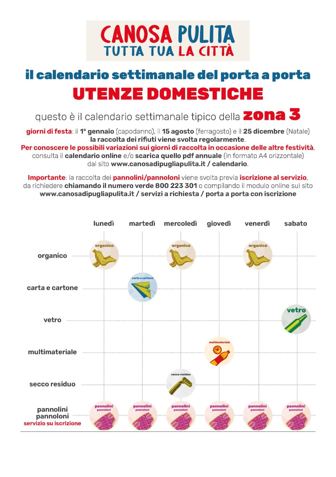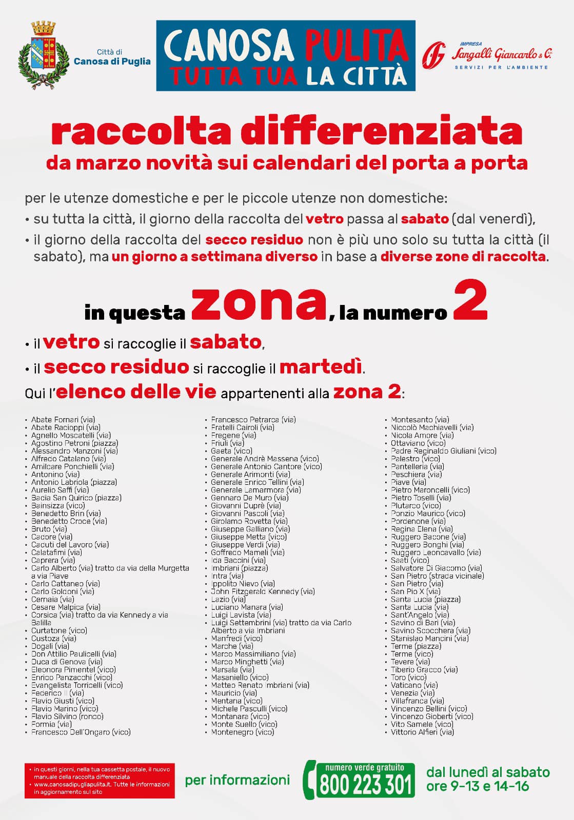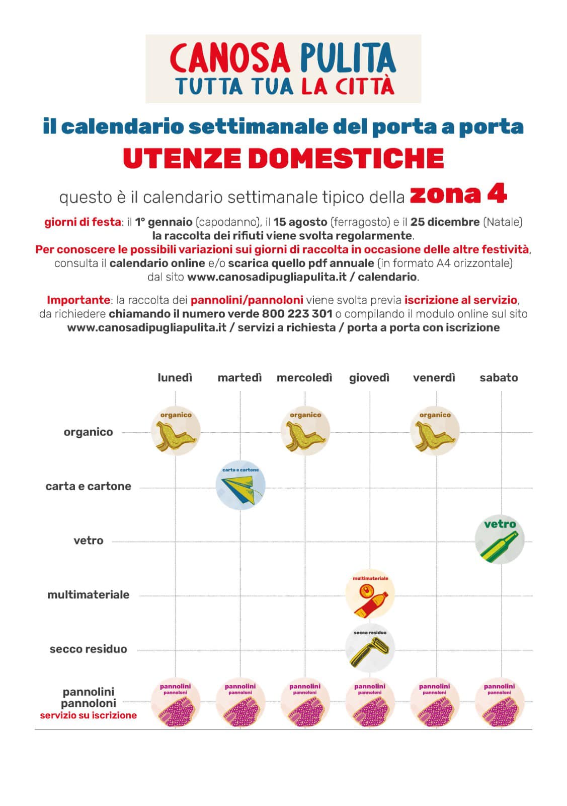 Qui di seguito i calendari settimanali di raccolta e lo stradario di riferimento.