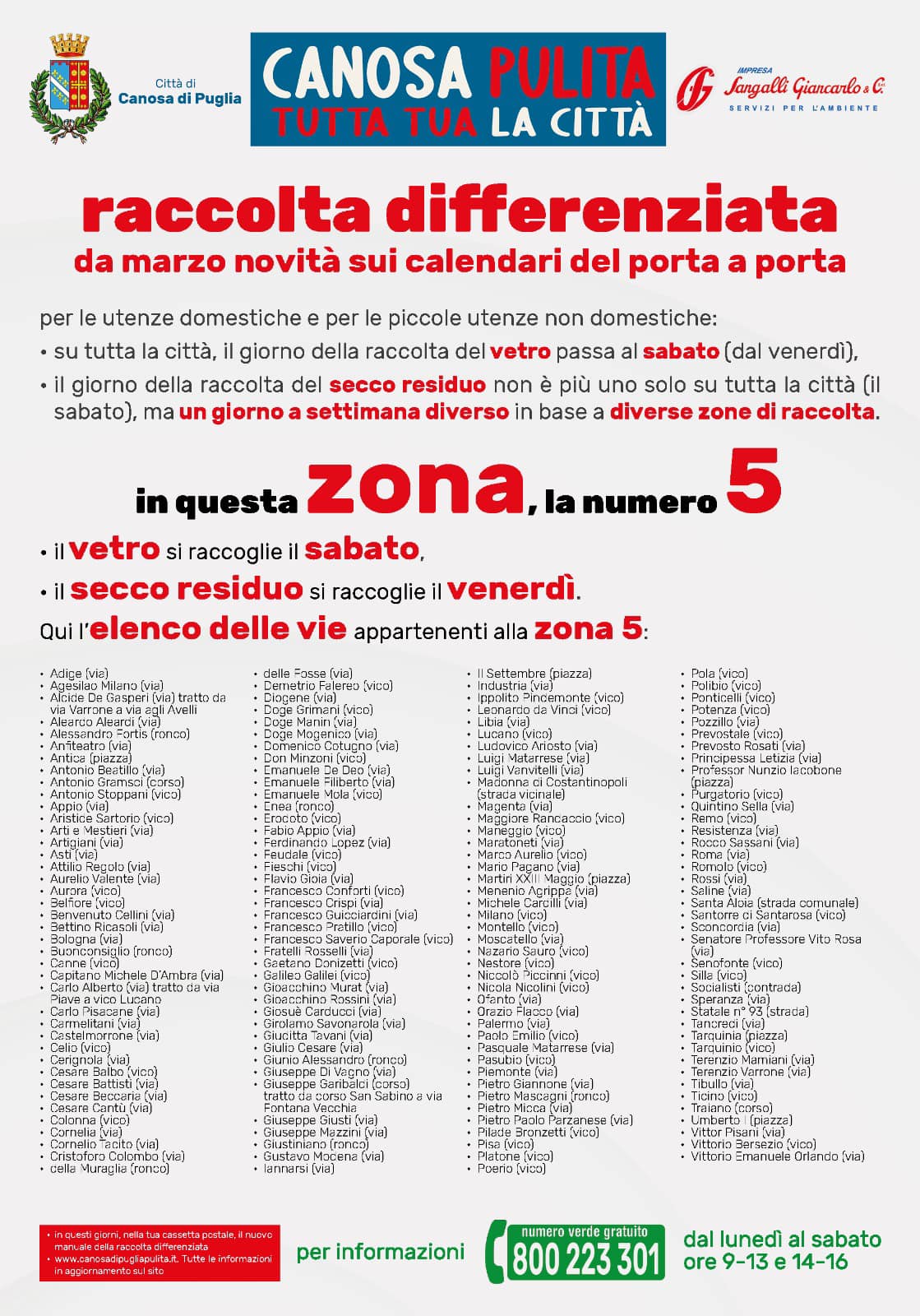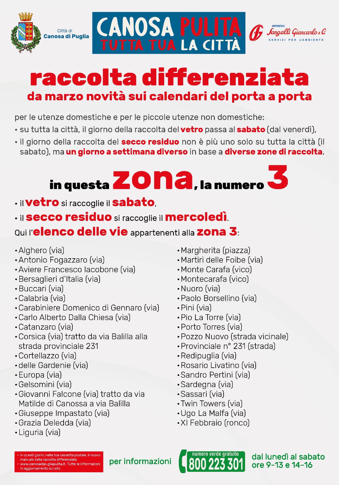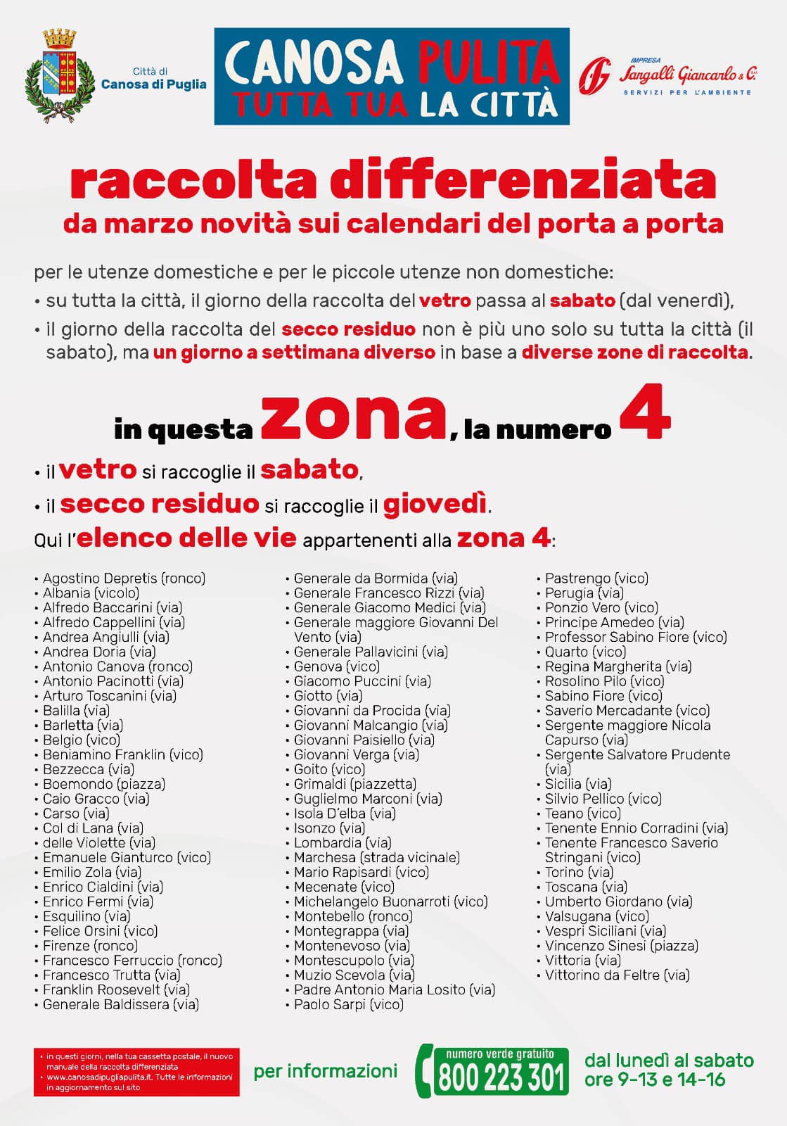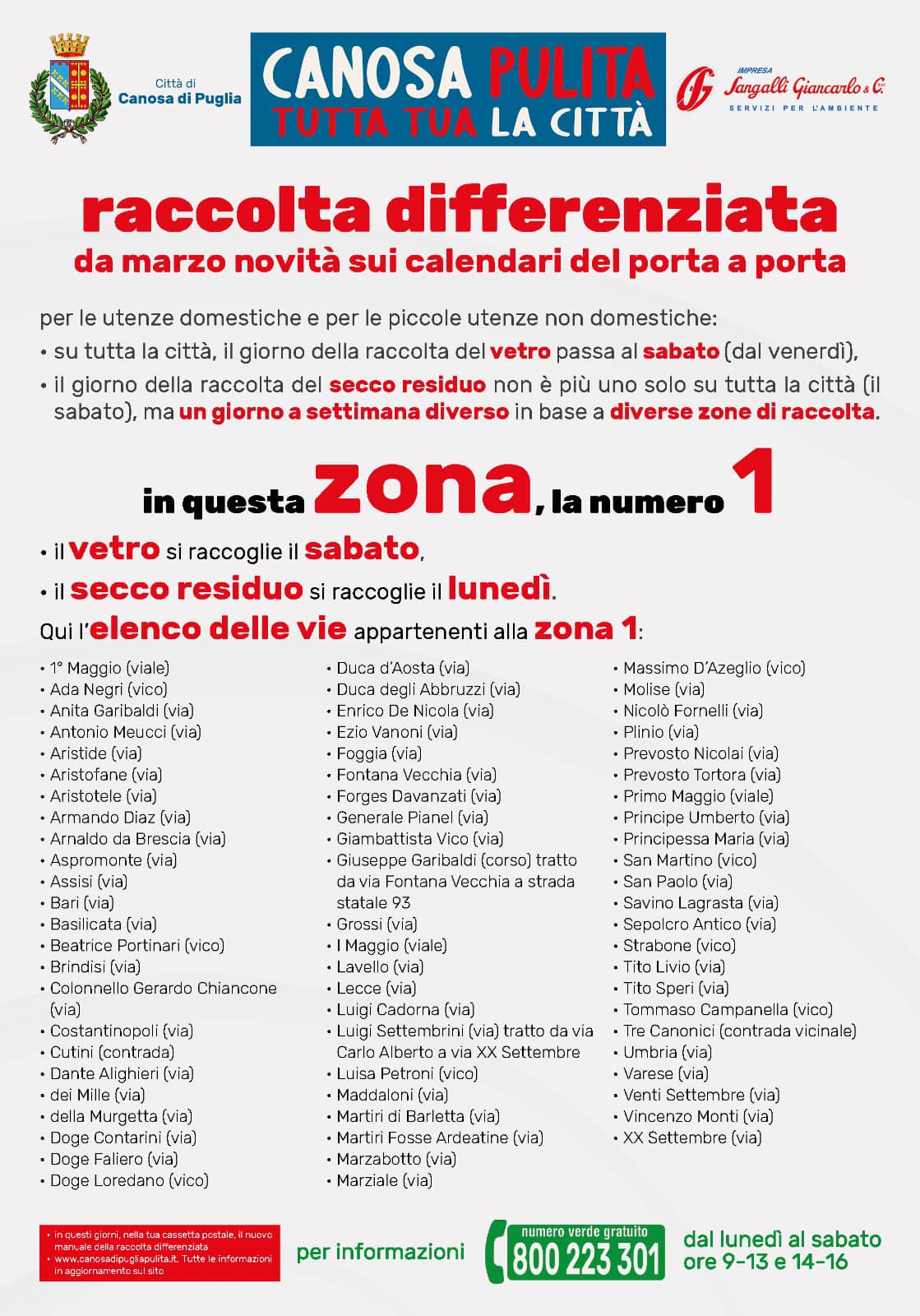 Qui di seguito i calendari settimanali di raccolta e lo stradario di riferimento.