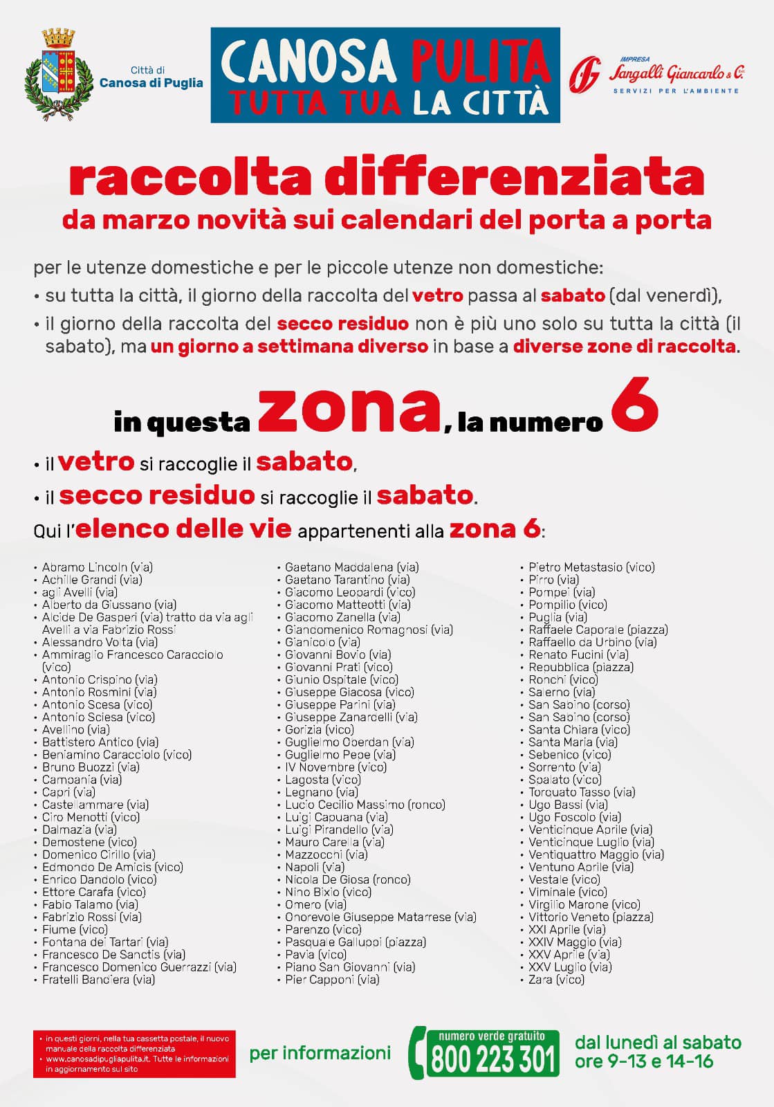 - - SECCO RESIDUO PER LE UTENZE DOMESTICHE DIVISO IN 6 ZONE: